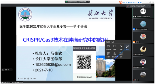 为深入贯彻suncitygroup太阳集团研究生教育会议精神,着力提高研究生生源质量的要求,suncitygroup太阳集团于7月10日上午8:30开展了2021年度全国优秀大学生暑期夏令营活动。活动统筹考虑当前常态化疫情防控要求和实际情况,通过网络会议的形式开展。suncitygroup太阳集团相关领导、各职能科室、导师代表及来自天津医科大学、湖北大学、湖北民族大学、江汉大学等多所高校和suncitygroup太阳集团本校的营员共50余人参加了本次活动。