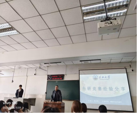 整场分享不仅有官方信息的精准传递,更融入了张月阳的实战经验与个人感悟,有效填补了大一新生的“竞赛信息差”。他多次鼓励新生“多走出去看看,主动链接优秀伙伴,在竞赛中深化专业认知”,为新生的学业规划与兴趣发展注入动力。